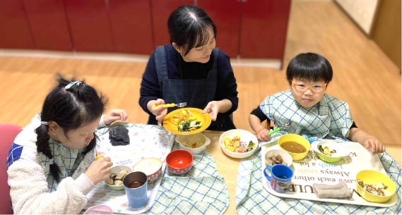 一緒に食事を楽しみながら、「ありがとう」「ごちそうさま」の気持ちを育てます。